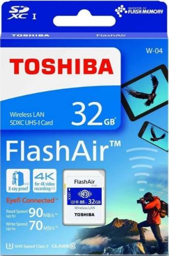 THOSHIBA FLASH AIR W04 32GB.MEMORY CARD WIFI สำหรับถ่ายโอนข้อมูลจากกล้อง สู่มือถือ ผ่าน แอพพลิเคชั่น FLASH AIRBrand: ToshibaModel: W04Capacity: 32GBClassClass : 10, UHS–I Speed Class 3Speed Rating: Read Speed 90 MB/s Write Speed 70 MB/sSpecial FeaturesWireless Transfer Speed : Max 100Mbps (60~70Mbps@Camera inserted) Wireless LAN Standard : IEEE802.11 b/g/n (2.4GHz SISO,20MHz)Wireless LAN Security : WEP, TKIP, AES (WPA, WPA2) DSC (Digital Still Camera) : Compatible with SDHC™ Memory CardOperating System (for config.) : Windows Vista/7/8/8.1/10 Mac OS X V.10.7 to V.10.10Browser : Internet Explorer, Safari, etc App V.3.1.1 for Android devices Android OS V.2.3.3 to V.5.0, Smartphone and Tablet are supported App: V.3.1.1 for iOS devices iOS V.6.0 ~, iPhone and iPad are supportedApplicable: Data Formats All data formats (ex: .jpg, .mpg, .raw etc) Power Supply : 2.7 - 3.6V Dimensions 32.0mm(L)x24.0mm(W)x2.1mm(T)Weight : approx. 2 g Operating Temperature : -25°C to +85°C (Recommended) Storage Temperature : -40°C to +85°C (Recommended)#toshiba#w04#flashair#memwif#memory#cardwifi#car#memorycard#toshibaflashair#flashairw#เมมโมรี่การ์ด#เมมไวไฟ#การ์ดไวไฟ#การ์ดกล้อง#เมมโตชิบ้า#