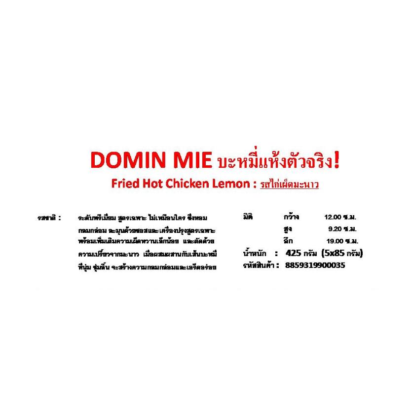 Domin Mie บะหมี่แห้งตัวจริง รสไก่เผ็ดมะนาว