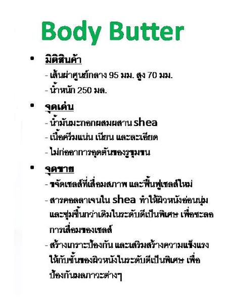 - สารคอลลาเจนใน Shea ทำให้ผิวหนังอ่อนนุ่ม และความชุ่มชื่นกว่าเดิม
