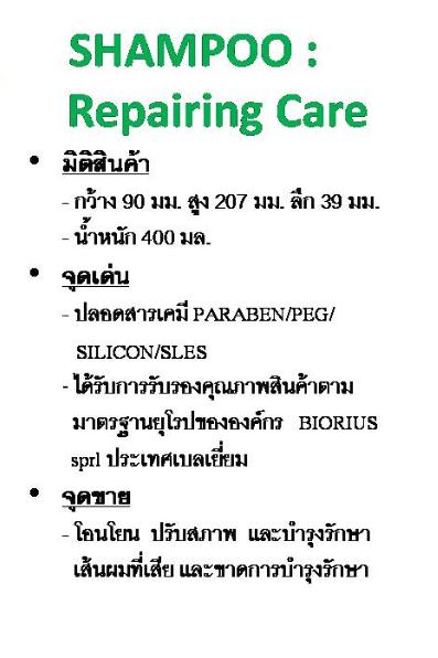 - อ่อนโยน ปรับสภาพ และบำรุงรักษาเส้นผมที่เสีย และขาดการบำรุง
