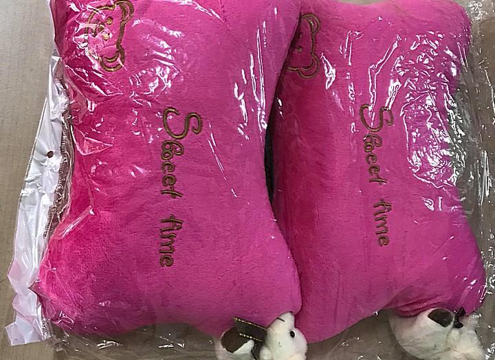 หมอนรองคอ Sweet Time สีชมพูพร้อมมีตุ๊กตาหมีสีขาว เหมาะแก่การใช้งานภายในรถยนต์ ขนาด28*17cm. 2ใบ