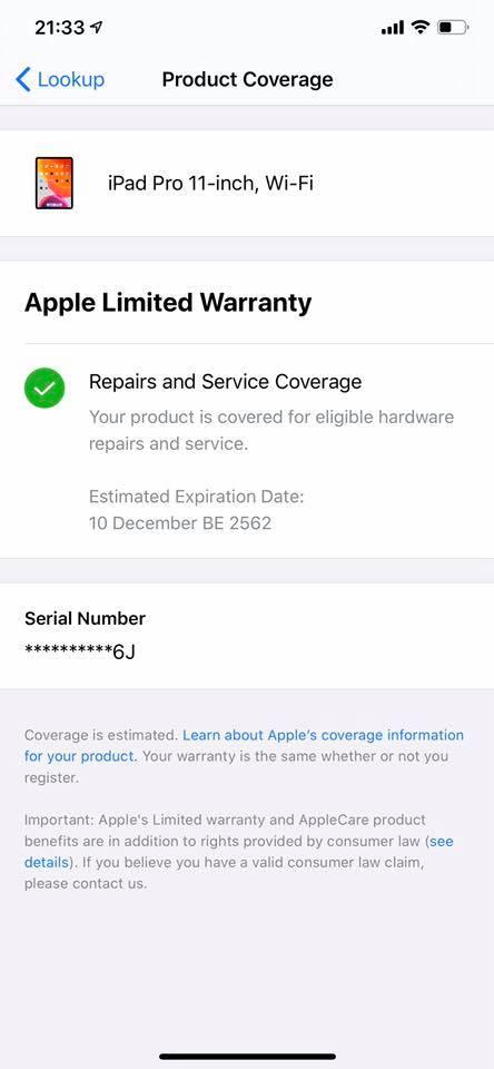 iPad Pro 11” 64GB WiFi Black THประกัน 12/62 ราคา 24,500 บาท