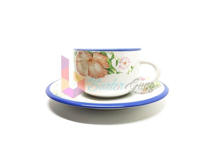 - 1 แก้วกาแฟเซรามิค สีขาวขอบสีฟ้า