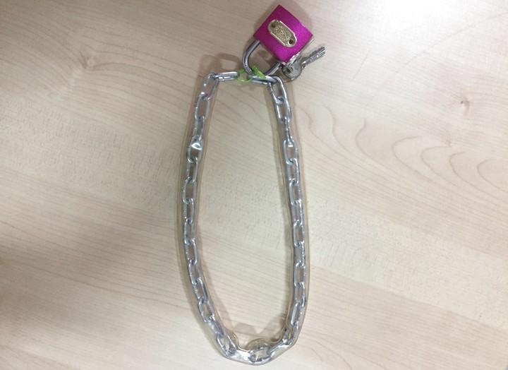- โซ่และห่วงกุญแจทำจากเหล็กชุบแข็งต้านทานต่อการตัด